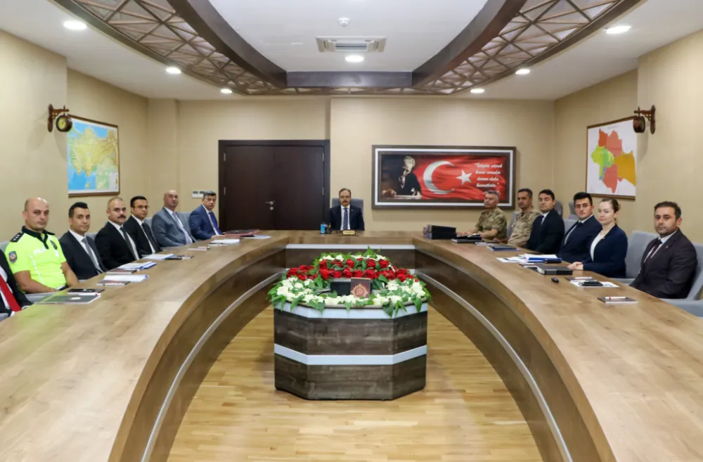Siirt İl Genelinde Alınan Güvenlik Tedbirlerinin Değerlendirildiği, 'Haftalık İl Güvenlik Ve Asayiş Koordinasyon Toplantısı Siirt Valisi Dr. Kemal Kızılkaya Başkanlığında Düzenlendi. Siirt Valiliği toplantı salonunda üzenlenen toplantıda; Terör, Mali ve Organize Suç Örgütleri, Uyuşturucuyla Mücadele, Asayiş, Düzensiz Göçle Mücadele, Trafik, Siber Suçlarla Mücadele, Orman ve Anız yangınları ile mücadelede ve Siirt il genelinde sulama kanalları ile göletlerde boğulma olayların önlenmesine yönelik alınan tedbirler görüşüldü. Vali Kızılkaya, Şehrimizin huzur ve güvenliği için ilgili birimlerimiz hizmetlerini 7/24 büyük bir kararlılıkla sürdürmeye devam ediyor. Sözlerine yer verdi.