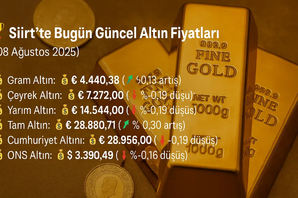 Siirt serbest piyasasında altın fiyatları 08 Ağustos 2025 Cuma sabahı itibarıyla güncellendi. Küresel altın piyasasındaki dalgalanmalar, yerel fiyatlara da yansıdı.