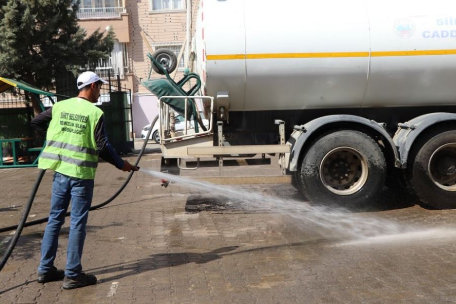 Siirt Belediye, ara verdiği cadde ve kaldırım yıkamalarına havaların ısınasıyla yeniden başlattı.