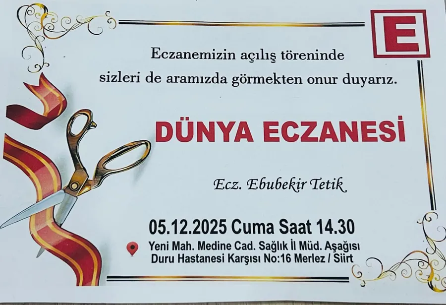 “Eczacılık yalnızca ilaç temini değil, aynı zamanda halkın sağlık danışmanı olmak demektir. Siirt’e bu bilinçle hizmet etmek için yola çıktık. Açılışımıza katılıp destek veren tüm misafirlerimize teşekkür ediyorum.”