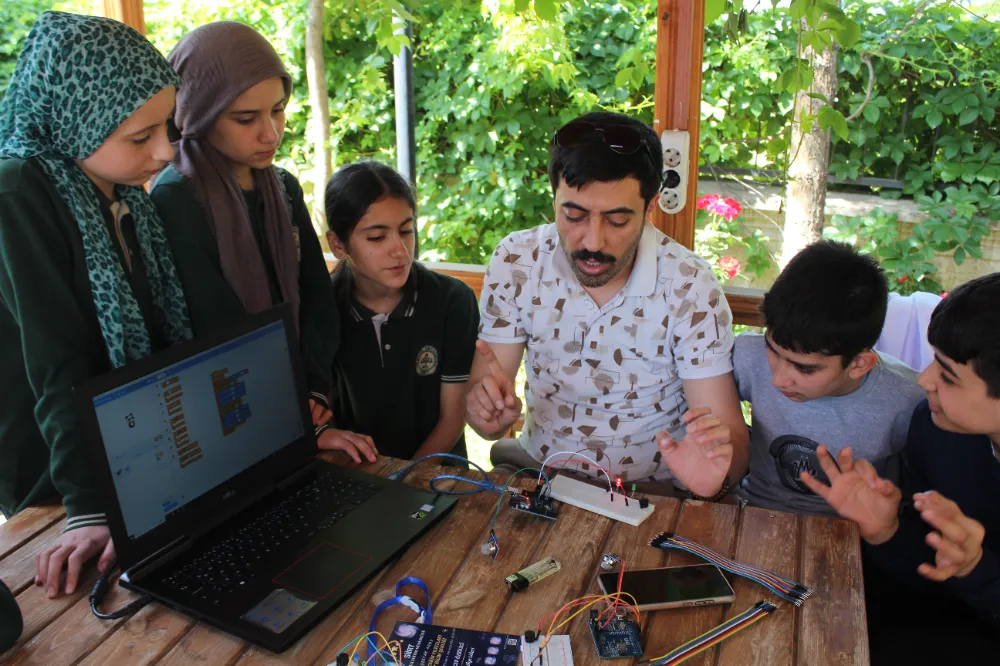 Renklere uyarlı robot yapan ve projesini tanıtan öğrenci Yasemin Alpay, ''Çizgi izleyen robot yapmaya çalışıyoruz. Robotumuzun amacı bizim tanımladığımız renk sensöründeki rengi gördüğü zaman o rengi takip etmek ve yolda gördüğü engelleri sağ ya da sola giderek aşabilmektir'' dedi.