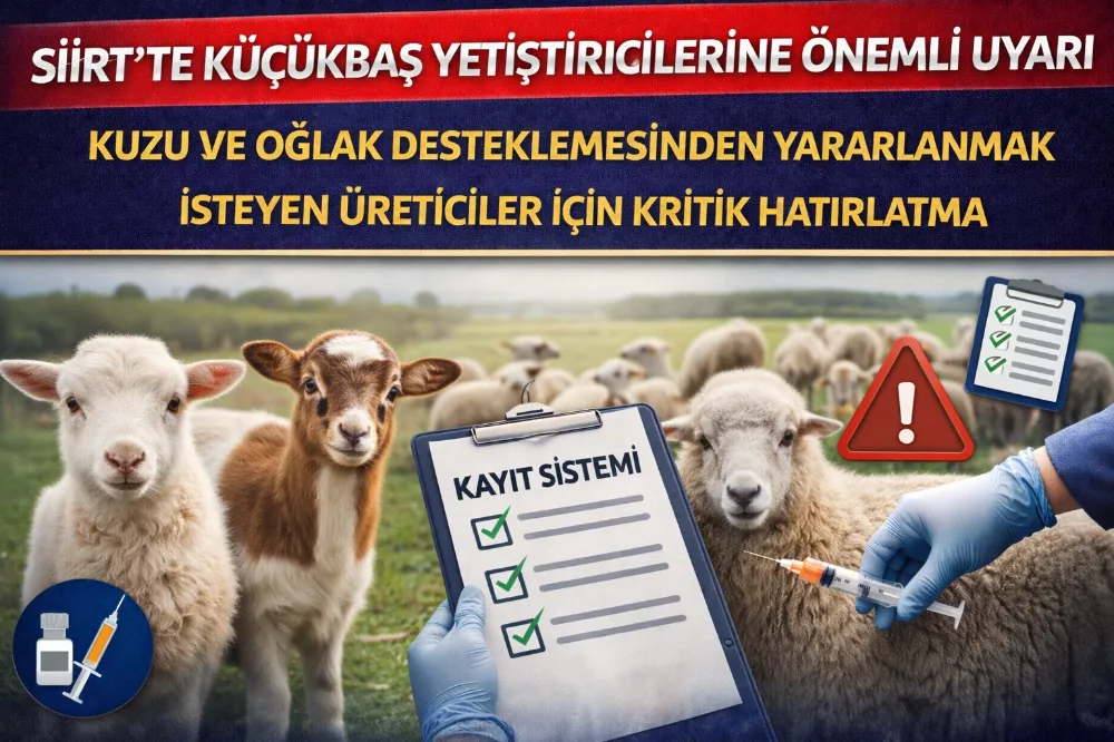 Siirt’te küçükbaş hayvancılıkla uğraşan üreticiler için kuzu ve oğlak desteklemesine ilişkin önemli bir hatırlatma yapıldı.