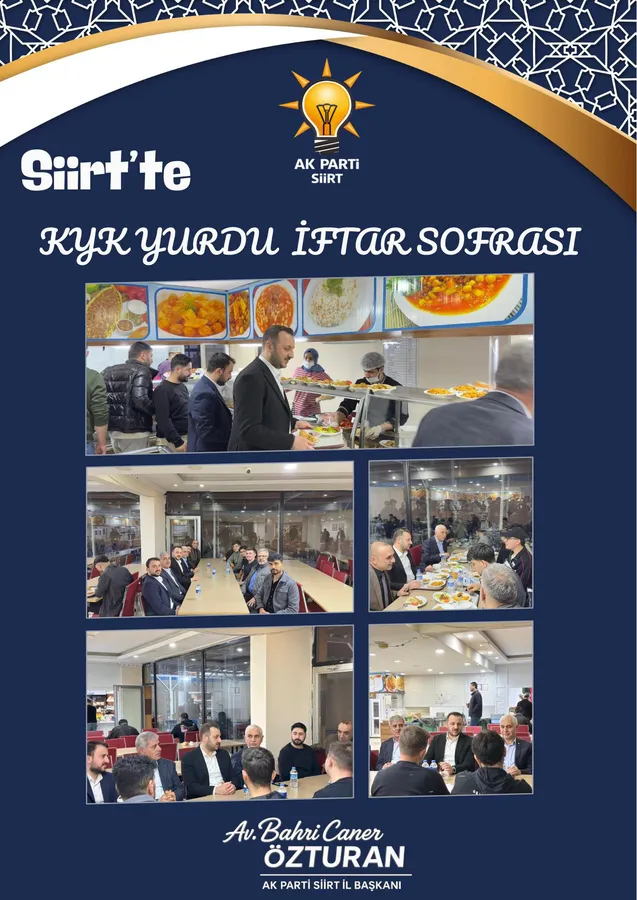 İftar programına; AK Parti Siirt İl Başkanı Bahri Caner Özturan, Siirt Milletvekili Mervan Gül, Merkez İlçe Başkanı Hikmet Ekin ve Gençlik Kolları Başkanı Murat Gül katıldı. Program boyunca öğrencilerle yakından ilgilenen heyet, gençlerin talep ve beklentilerini dinledi.