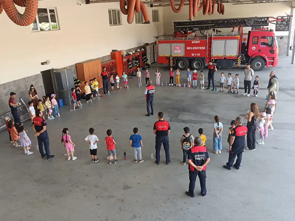 Siirt Dadaşlar İlkokulu ana sınıfı öğrencileri, Siirt Belediyesi İtfaiye Müdürlüğü’nü ziyaret ederek yangın güvenliği ve acil durumlarla ilgili önemli bilgiler edindi. Küçük öğrenciler, uzman ekipler tarafından bilgilendirilerek hem eğlendi hem öğrendi.