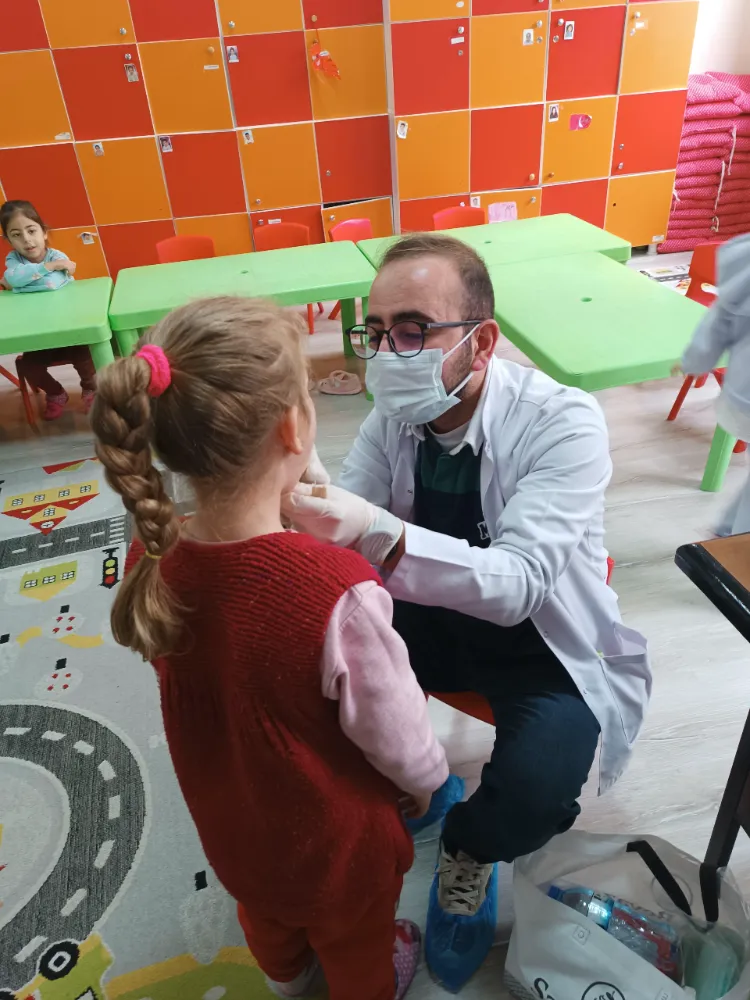 Siirt İl Sağlık Müdürlüğü koordinesinde düzenlenen etkinlikte Diş Hekimi Dt. Fatih Yavuz tarafından öğrencilere yönelik ağız ve diş sağlığı taraması yapıldı. Etkinlik kapsamında anaokulu öğrencilerinin ağız ve diş muayeneleri gerçekleştirilerek erken dönemde oluşabilecek diş problemlerinin tespiti için kontroller sağlandı.