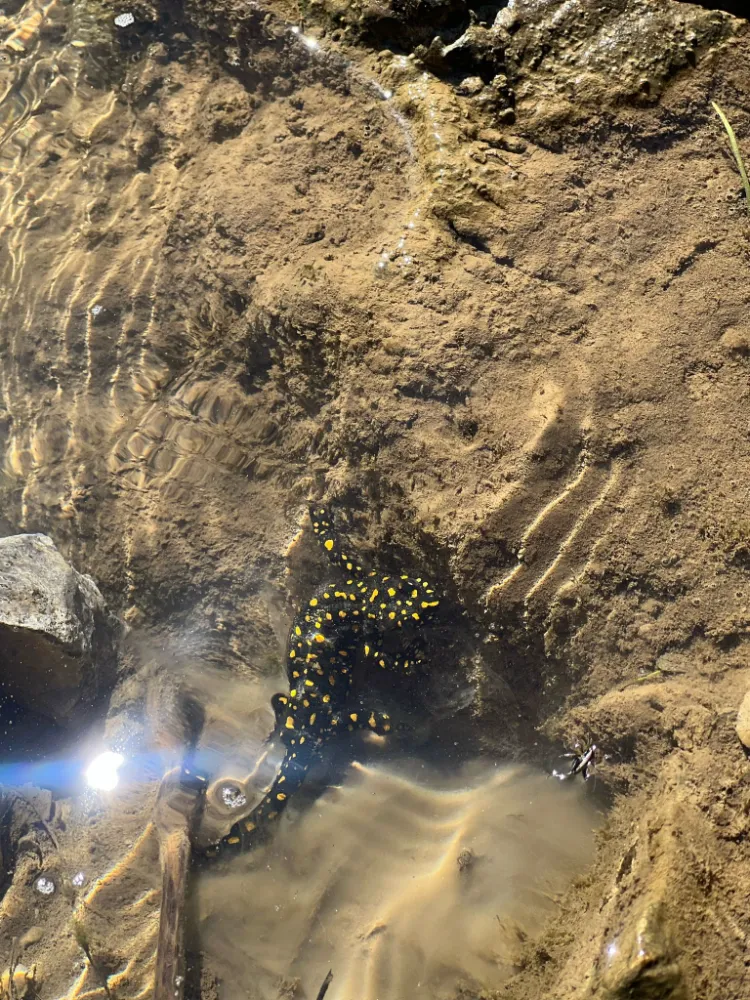 Siirt'in Şirvan ilçesinde nesli tehdit altındaki, 'lekeli semender' olarak bilinen sarı benekli semender görüldü.