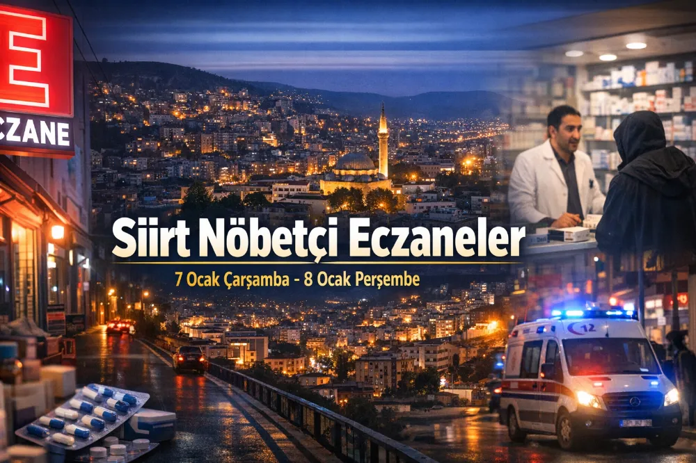 Siirt genelinde 7 Ocak Çarşamba akşamı ile 8 Ocak Perşembe sabahı arasında hizmet verecek nöbetçi eczaneler belli oldu. Merkez ve ilçelerde vatandaşların gece saatlerinde ilaç ve sağlık ihtiyaçlarını karşılayabilmesi için nöbet sistemiyle açık olacak eczaneler şöyle: