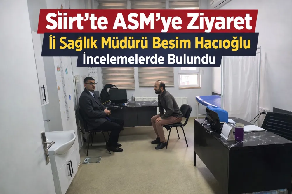 Siirt İl Sağlık Müdürlüğü koordinesinde yürütülen saha çalışmaları kapsamında, Besim Hacıoğlu (Siirt İl Sağlık Müdürü) tarafından Şehit Ebe Birgül Aktaş Aile Sağlığı Merkezi ziyaret edildi.