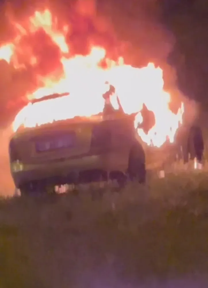 Siirt’in Yağmurtepe köyü mevkiinde seyir halindeyken alev alan otomobil küle döndü.