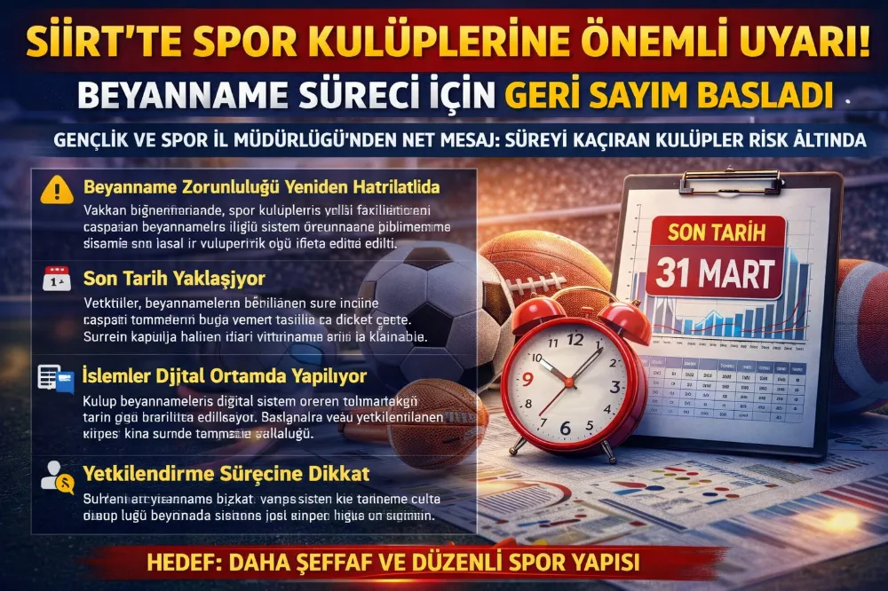 SİİRT’TE SPOR KULÜPLERİNE ÖNEMLİ UYARI! BEYANNAME SÜRECİ İÇİN GERİ SAYIM BAŞLADI