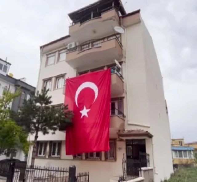 ŞEHİDİN EVİNE TÜRK BAYRAĞI ASILDI
