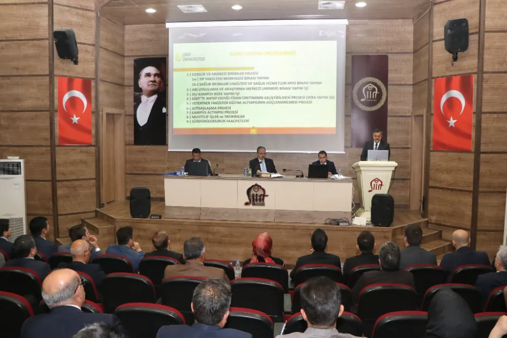 Siirt Üniversitesi Rektörü Prof. Dr. Nihat Şındak il koordinasyon kurulu toplantısına katıldı.Siirt Üniversitesi Rektörü Prof. Dr. Nihat Şındak, Siirt Valisi ve Belediye Başkan Vekili Dr. Kemal Kızılkaya başkanlığında Siirt Valiliği Konferans Salonu’nda gerçekleştirilen “2025 Yılı II. Dönem İl Koordinasyon Kurulu Toplantısına” katıldı. Toplantıya Siirt Üniversitesi Rektörü Prof. Dr. Nihat Şındak’ın yanı sıra kurum ve kuruluş temsilcileri katıldı. Toplantıda kamu kurumlarının yatırımları değerlendirilerek, kurumlar arası koordinasyon gerektiren konular ele alındı. Bu doğrultuda kurumlar projelerini sunarken, koordinasyon gerektiren başlıklar da not alındı. Kurul üyelerine hitap eden Siirt Valisi ve Belediye Başkan Vekili Dr. Kemal Kızılkaya, 2025 yılı itibariyle Siirt genelinde toplam 103 proje üzerinde çalışmalar sürüyor. Bu projeler için 8 milyar 874 milyon TL ödenek ayrılırken, bugüne kadar 1 milyar 141 milyon TL harcama yapıldı. Projelerin nakdi gerçekleşme oranı %35, fiziki gerçekleşme oranı ise %23 seviyesinde gerçekleşti. dedi. Toplantıda Rektör Prof. Dr. Nihat Şındak ise 2025 kamu yatırım projeleriyle ilgili bir sunum gerçekleştirdi. Bu çerçevede Rektör Prof. Dr. Nihat Şındak, Üniversitemizin gerek fiziki altyapısını güçlendirmeye yönelik yatırımları gerekse akademik ve bilimsel gelişimi destekleyen projeleri hakkında kapsamlı bilgiler vererek, yatırımların yalnızca Üniversitemizin değil, aynı zamanda bölgenin sosyal, ekonomik ve kültürel gelişimine de önemli katkılar sağlayacağını vurguladı. Toplantı yapılan değerlendirmelerin ardından son buldu.