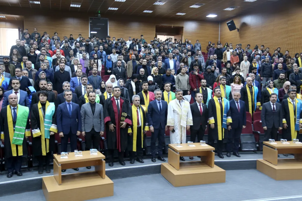 Vali yardımcısı Abdulhamit Mutlu, il protokolü, rektör yardımcıları, fakülte dekanları, Üniversite öğretim üyeleri ve aileleri ile çok sayıda öğrencinin katılımıyla gerçekleştirilen tören saygı duruşu ve İstiklal Marşı’nın okunmasının ardından başladı.