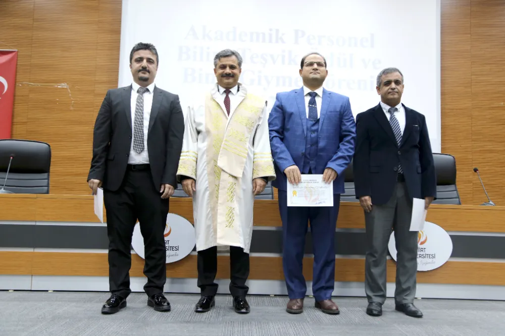Siirt Üniversitesi (SİÜ) bünyesinde akademik teşvik almaya hak kazanan akademisyenler ile akademik yükselme hakkı kazanan öğretim üyeleri için SİÜ İlahiyat Fakültesi Konferans Salonunda Rektör Prof. Dr. Nihat Şındak’ın da katılımıyla “Akademik Personel Bilim Teşvik Ödül ve Biniş Giyme Töreni” düzenlendi.