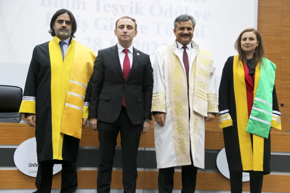 Akademik Personel Bilim Teşvik Ödül ve Biniş Giyme Töreni toplu hatıra fotoğrafı çekilmesinin ardından sona erdi.