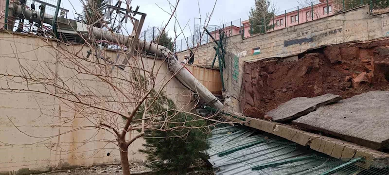 Şanlıurfa’nın Siverek ilçesinde etkili olan yağışlar sonrası Molla Ramazan Anadolu İmam Hatip Lisesi’nin bahçe istinat duvarı, öğrencilerin okula giriş saatinde çöktü. Olayda can kaybı ya da yaralanma yaşanmazken çökme anı güvenlik kameralarına yansıdı.