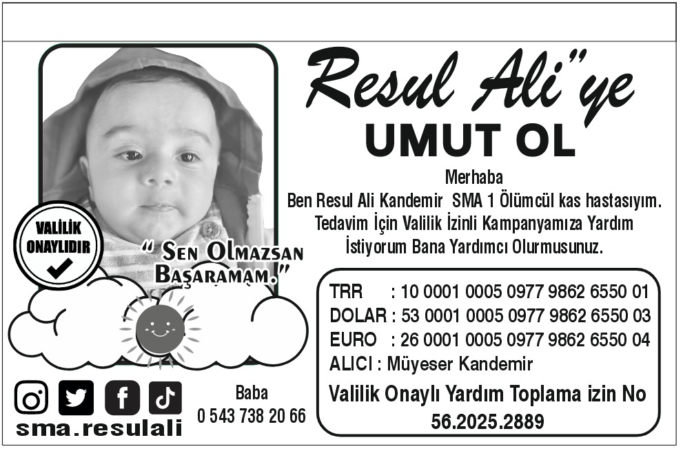 Kampanyaya ait yardım görselinde ise Resul Ali’nin masum bakışlarıyla birlikte “Sen olmazsan başaramam” ifadesi yer alıyor. Yardımlar, valilik onaylı izinle toplanıyor ve resmi hesaplar üzerinden kabul ediliyor.
