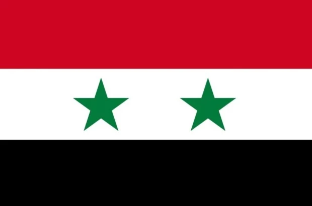 “Suriye Arap Cumhuriyeti bayrağı üç renkten, kırmızı, beyaz ve siyah ve her biri beş açılı iki yeşil yıldızdan oluşur. Bayrak, genişliğinin uzunluğunun üçte ikisine denk dikdörtgen şeklindedir. Aynı boyutlarda ve bayrakla aynı uzunlukta üç dikdörtgene bölünmüştür. Üstteki kırmızı, ortadaki beyaz ve alttaki siyahtır. Beyaz dikdörtgenin ortasında iki yeşil yıldız bulunur.”