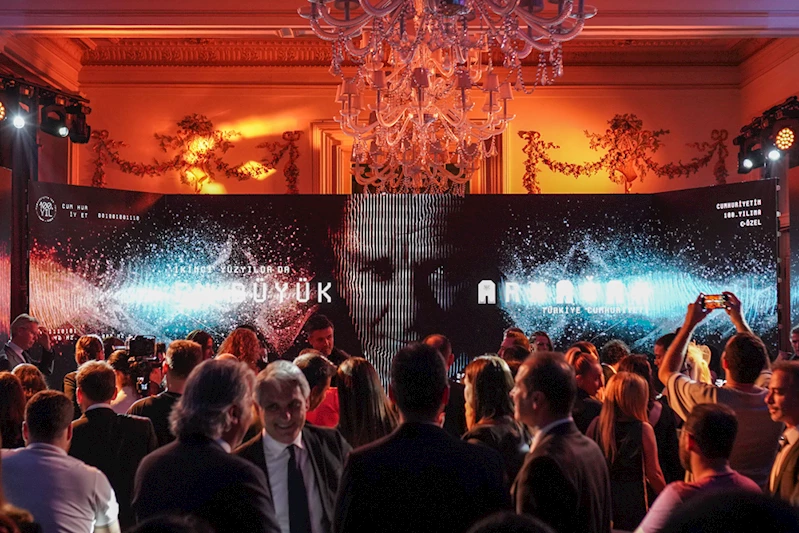 Toprak Sergen'in sunuculuğunu üstlendiği gecede, Atatürk'ün başta Nutuk'ta yer alan sözleri olmak üzere Türk milletine yol gösteren pek çok sözü tarihi bir akış içinde kendi sesinden davetlilerle buluştu. 4129Grey tarafından "Generative AI" yapay zeka teknolojisiyle hazırlanan çalışmada ayrıca Atatürk'ün ses dalgaları da silüetini oluşturan formlara dönüştü.