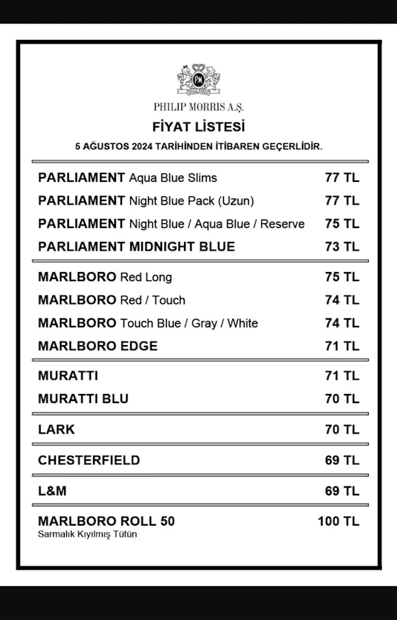 Philip Morris sigara firması ürünlerine zam yaptığını açıkladı. Bugünden itibaren geçerli olacak yeni fiyatlara göre firmanın en ucuz markası 69 liradan. en pahalı markası ise 100 liradan satılacak.