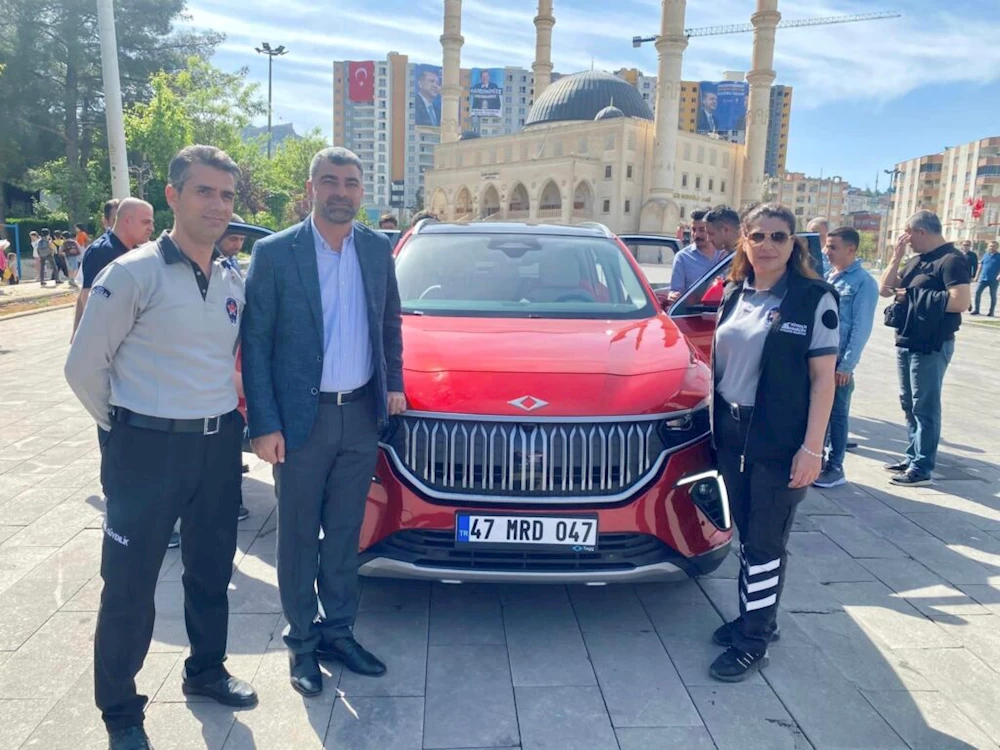 Merkez Artuklu ilçesinde 15 Temmuz Demokrasi ve Şehitler Parkı'nda toplanan vatandaşlar, 'Anadolu kırmızısı' rengindeki aracı çok beğendi.