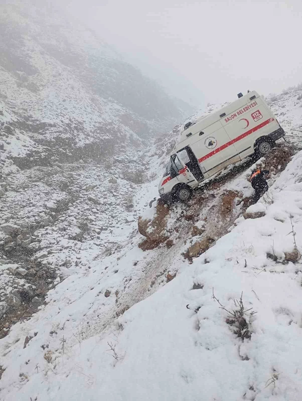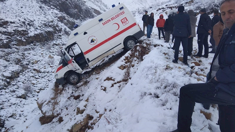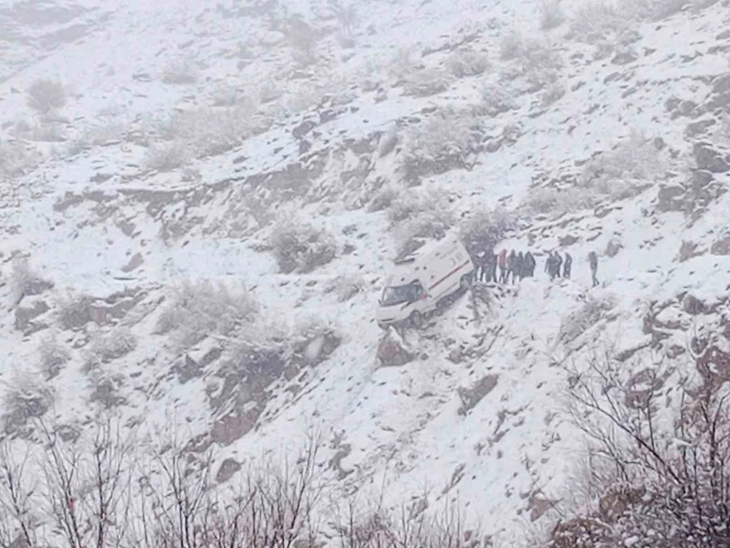 Yoğun kar yağışının devam ettiği Batman’ın Sason ilçesinde hayatını kaybeden 75 yaşındaki kadının cenazesini ilçeye bağlı Çalışırlar köyüne ulaştıran belediyeye ait cenaze taşıma aracı, yoğun kar yağışı nedeniyle kayganlaşan yolda sürücüsü Engin Yaşar’ın kontrolünden çıktı. Sürücü son anda atlayarak kurtulurken, araç uçurumun kenarında kaldı.