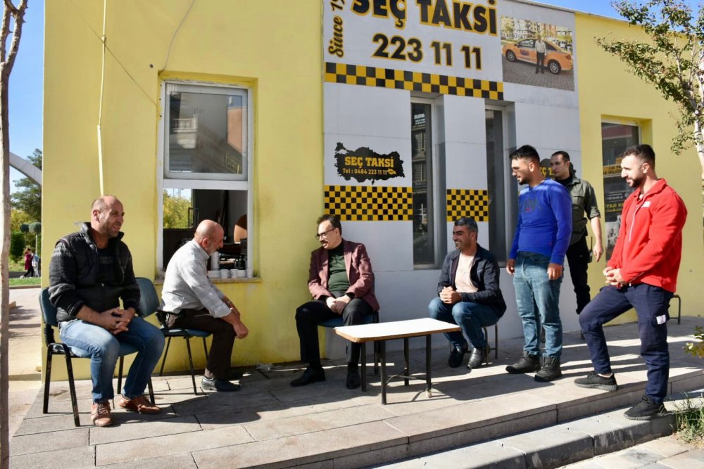 Vali/Belediye Başkan Vekili Dr. Kemal Kızılkaya, 15 Temmuz Demokrasi Meydanında bulunan Seç Taksi Durağındaki taksici esnafını ziyaret ederek, taksici esnafıyla sohbet etti. Vali Kızılkaya sosyal medya hesabından yaptığı açıklamada; “Seç Taksi Durağında taksici esnaf kardeşlerimizi ziyaret ettik. Kendileriyle çay tadında sohbet ettik. Düşüncelerini dinledik. Bizleri muhabbetle karşılayan esnafımıza teşekkür ediyor, hayırlı, bol ve bereketli kazançlar diliyorum. “ İfadelerini kullandı.