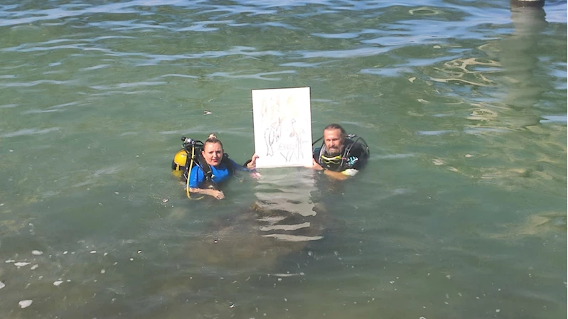 Edremit Belediyesinden yapılan açıklamaya göre, su altına dalış yaparak resim çizen ressam İlim, belediyenin düzenlediği etkinliğe katıldı.