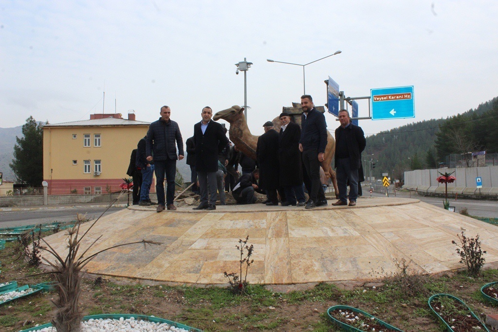 Veysel Karani Belediye Başkanı Murat Akgün Veysel Karani girişinde bulunan Dörtyol orta kavşağına Veysel Karani Hazretleri deve Sembolünü dikti.