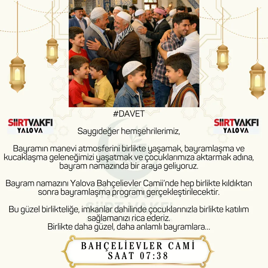 Siirtli hemşehrilere yapılan çağrıda, imkanlar dahilinde herkesin programa katılım sağlaması rica edilirken, “Birlikte daha güzel, daha anlamlı bayramlara” mesajı verildi.