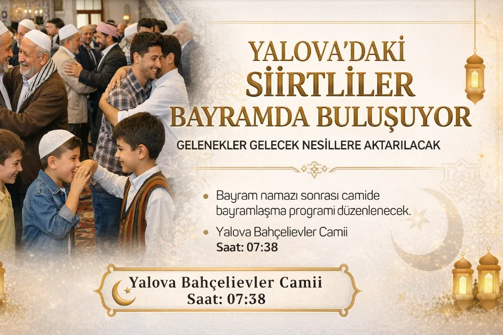 Yalova’da yaşayan Siirtli vatandaşlar, Ramazan Bayramı’nın manevi atmosferini birlikte yaşamak ve kadim bayramlaşma geleneğini gelecek nesillere aktarmak amacıyla anlamlı bir organizasyonda bir araya geliyor.