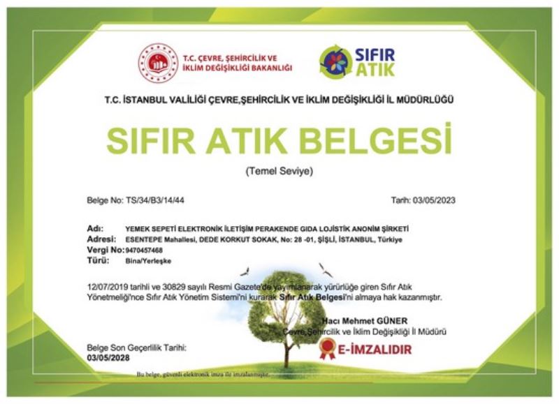 Yemeksepeti, 'Sıfır Atık Belgesi' ile çevreye katkısını resmileştirdi