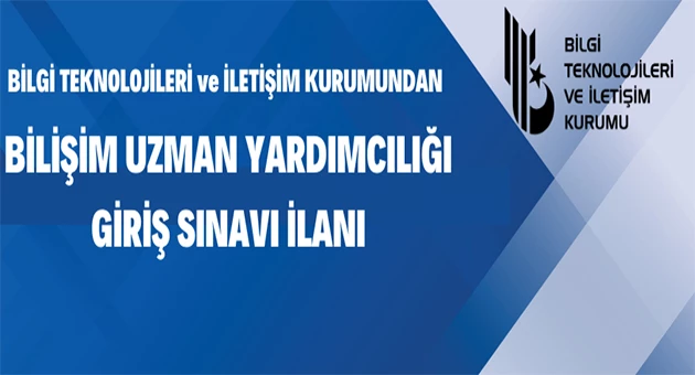 Bilgi Teknolojileri ve İletişim Kurumu merkez teşkilatı hizmet birimlerine yazılı ve sözlü olmak üzere iki aşamada yapılacak giriş sınavı ile bir önceki sınavda doldurulamayan kadrolar için Bilişim Uzman Yardımcısı alınacaktır.
