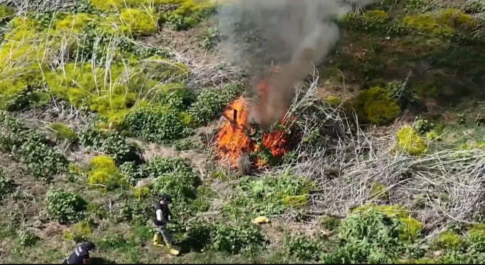 Burada ele geçirilen ve piyasa değeri 100 milyon Türk Lirası'ndan fazla olan yaklaşık 300 kilogram skunk-esrar üretimine elverişli kök kenevir bitkisi yok edildi. Yasadışı ekilen kenevirlerin tespitinin engellenmesi için uyuşturucu tacirlerinin oluşturduğu çeşitli engeller de polisi yıldırmamış, uyuşturucu bulunan her noktaya bot ve traktör gibi araçlar ile ulaşıldı.