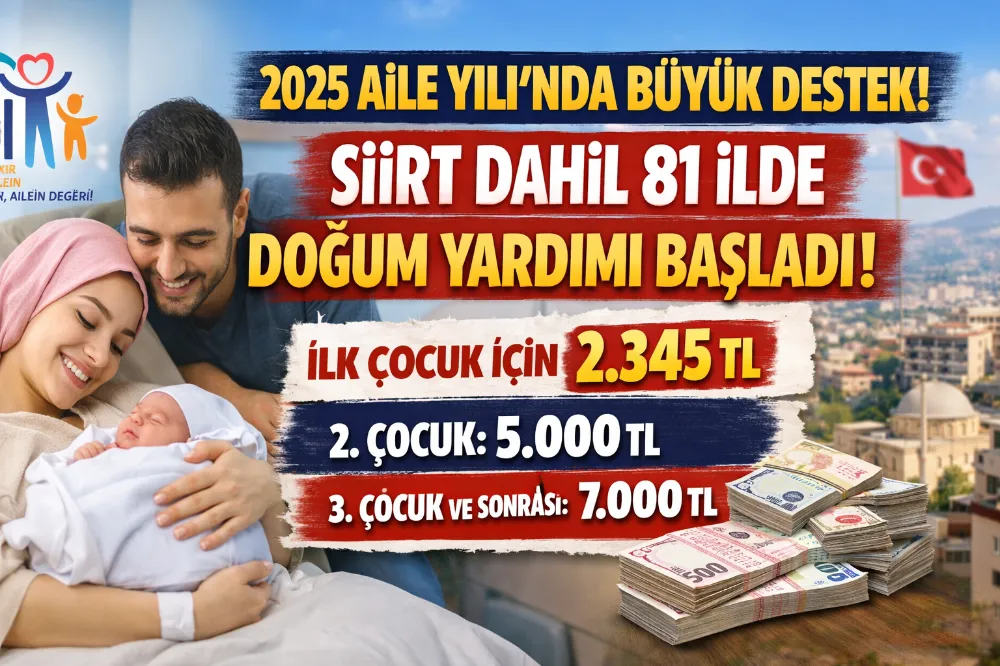 Cumhurbaşkanlığı tarafından “2025 Aile Yılı” ilan edilmesinin ardından, aileleri ilgilendiren sosyal destekler yeniden gündemin merkezine taşındı. Bu kapsamda, Siirt dahil 81 ilin tamamında uygulanan doğum yardımı programı, yeni çocuk sahibi olan aileler için önemli bir maddi destek sunuyor.