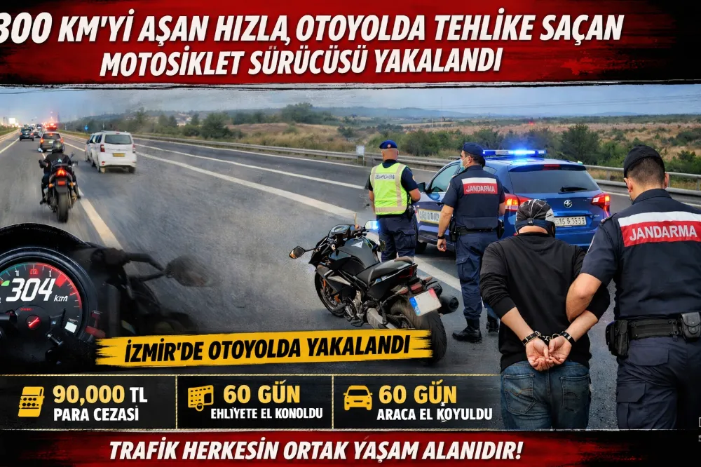 İçişleri Bakanı Ali Yerlikaya, sosyal medya hesabından yaptığı açıklamayla otoyolda 300 kilometrenin üzerinde hız yaparak ve makas atarak trafik güvenliğini tehlikeye düşüren motosiklet sürücüsünün yakalandığını duyurdu.