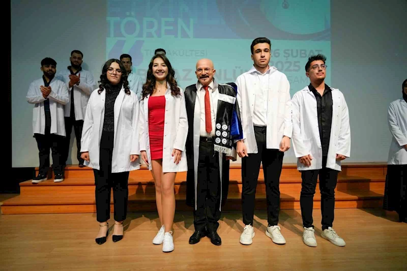 Konuşmaların ardından öğretim üyeleri, tıp fakültesine yeni başlayan 215 öğrenciye beyaz önlüklerini giydirdi.
