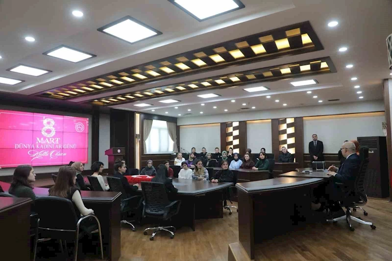 Ağrı Valisi Mustafa Koç ve eşi Neslihan Gül Koç, 8 Mart Dünya Kadınlar Günü dolayısıyla valilik yerleşkesindeki kurumlarda görev yapan kadın personellerle bir araya geldi.