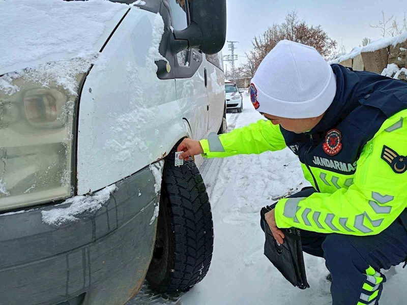 Ağrı İl Jandarma Komutanlığı personelleri trafikte güvenliği sağlamak amacıyla araçları denetledi.
