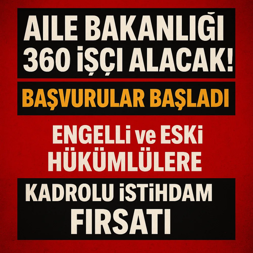 Engelli ve Eski Hükümlülere Kadrolu İstihdam Fırsatı Aile ve Sosyal Hizmetler Bakanlığı, taşra teşkilatında görevlendirilmek üzere 360 sürekli işçi alımı yapacak.