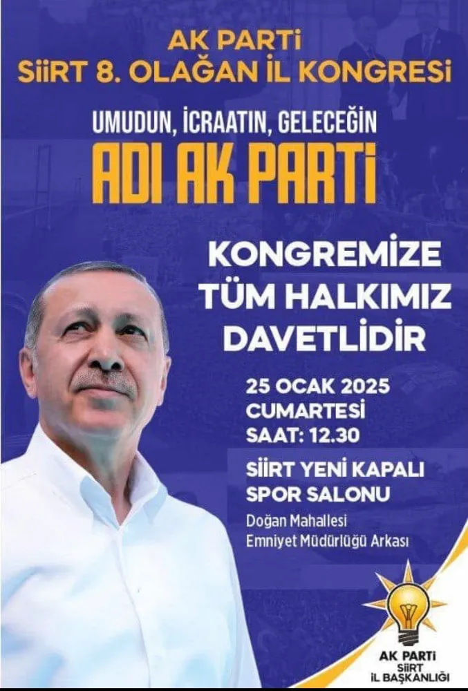 Siirt' Yeni Kapalı Spor Salonunda yapılan AK Parti Siirt İl Başkanlığı 8 . Olağan kongresinde ,AK Parti Siirt İl Başkanlığına mevcut il başkanı Av,Bahri Caner Özturan Seçildi.