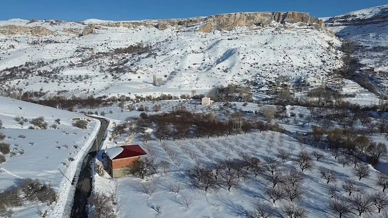 Malatya’nın Akçadağ ilçesinde etkili olan kar yağışı bölgeyi beyaz örtüyle kaplarken görsel şölen oluştu.