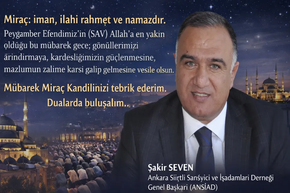 Ankara Siirt’li Sanayici ve İşadamları Derneği (ANSİAD) Genel Başkanı Şakir Seven, Miraç Kandili dolayısıyla yayımladığı mesajda, Miraç gecesinin iman, ilahi rahmet ve namazla anlam kazanan müstesna bir gece olduğuna dikkat çekti.