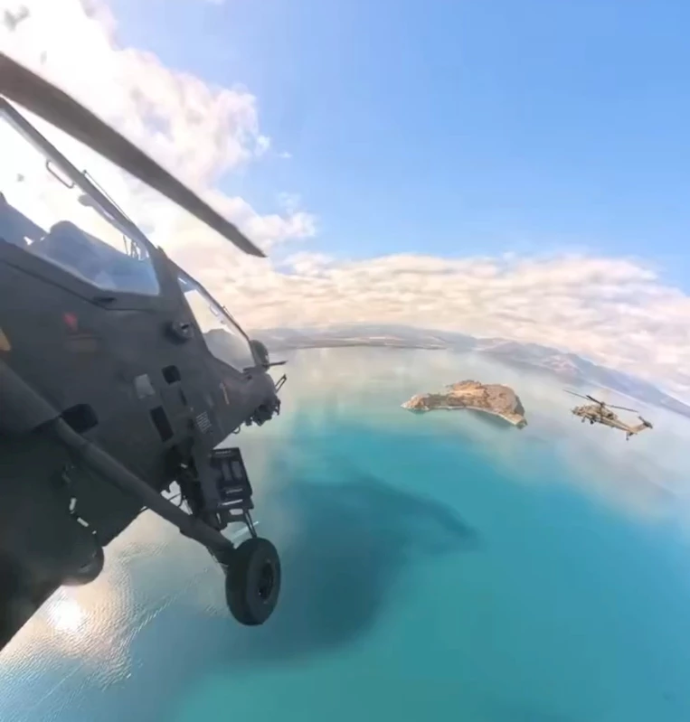 Paylaşılan video, sosyal medya kullanıcıları tarafından binlerce kez izlenirken, 2 Atak helikopteri Van Gölü üzerinde süzülürken diğer helikopterin kamerasına yansıyan Van Gölü’ün masmavi suları içerinde yer alan Akdamar Adası ile Edremit ilçesi kart postallık görüntülerin ortaya çıkmasına neden oldu.