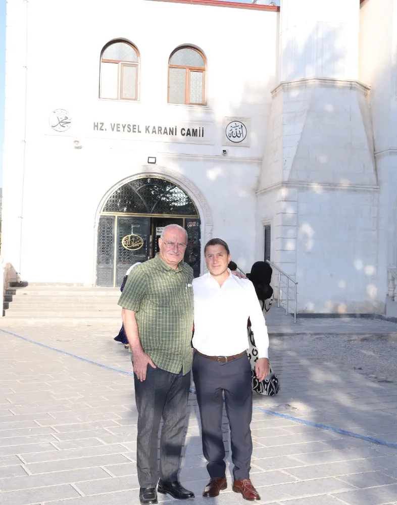 “Görmeden inanmanın” sembolü olarak anılan ve sabrın, teslimiyetin, sadakatin timsali kabul edilen Veysel Karani Hazretleri’nin kabri başında dua eden heyet, bu manevi atmosferde vatan, millet ve tüm sevdikleri için niyazda bulundu.