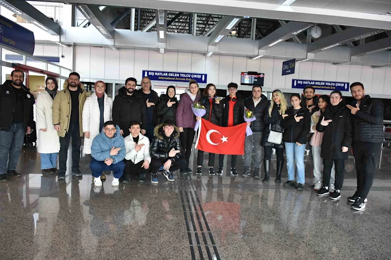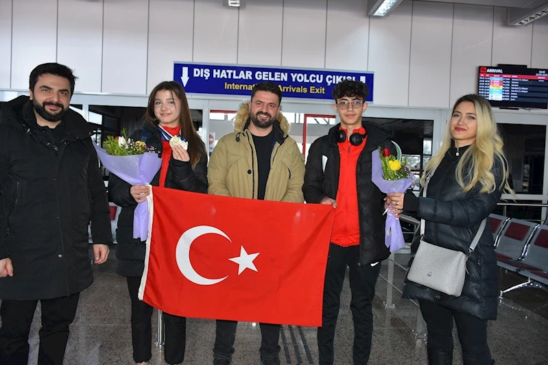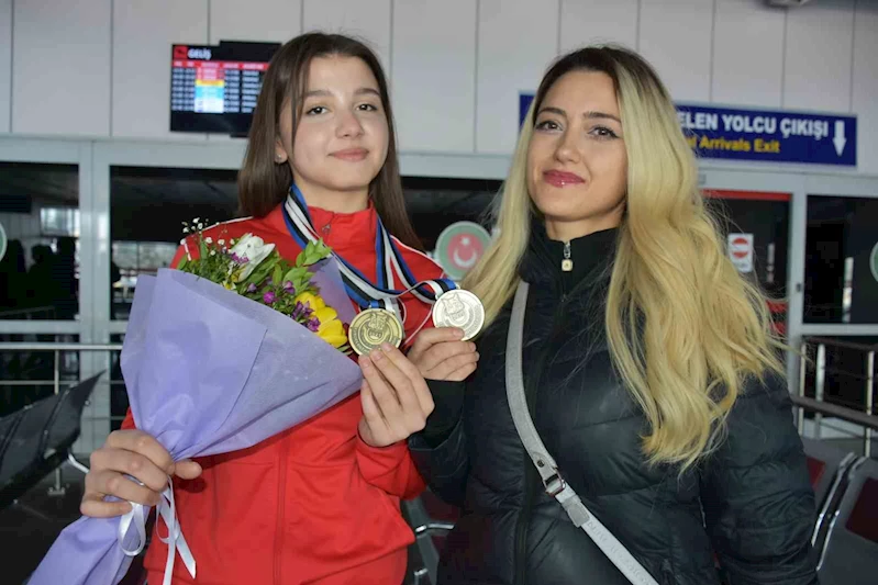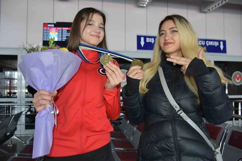 U16 ve U18 Havalı Silahlar Avrupa Şampiyonası 10 Metre Havalı Tüfek U-18 Trio Kadınlar kategorisinde ve takım yarışlarında üçüncü olarak Çifte bronz madalya kazanan Rana Gözübüyük ile milli sporcu Muhammet Serhat Demir, hava limanında çiçeklerle karşılandı.