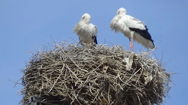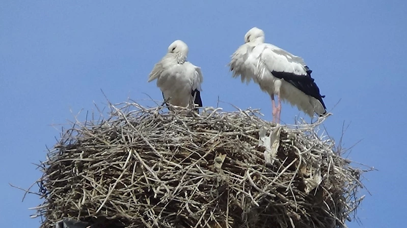Hava sıcaklığının artmasıyla leylekler Iğdır’a gelmeye ve yuvalarını yapmaya başladı.