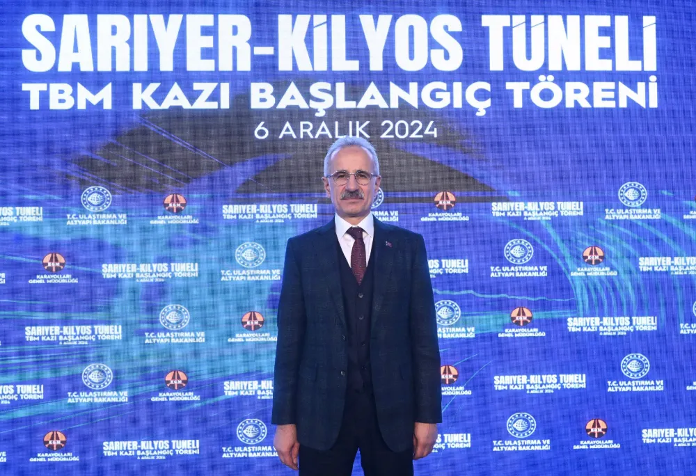Ulaştırma ve Altyapı Bakanı Abdulkadir Uraloğlu, Sarıyer-Kilyos Tüneli TBM Makinası Hizmete Başlatma Töreni’nde konuştu. TBM makinasının, Türkiye'de Karayolları Genel Müdürlüğü sorumluluğunda ilk kez kullanılacağını belirten Bakan Uraloğlu, “Türkiye'nin coğrafyası, zengin bir çeşitliliğe sahip olsa da ağırlıklı olarak dağlık arazilerin olması inşaat sektörü için hem bir zorluk hem de yenilikçi çözümlerin geliştirilmesini zorunlu kılan bir durumdur.” ifadelerini kullandı.