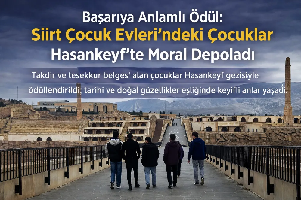Siirt Çocuk Evleri Sitesi’nde kalan ve eğitim hayatlarında takdir ile teşekkür belgesi almaya hak kazanan çocuklar, başarılarının karşılığını Hasankeyf gezisi ile aldı. Düzenlenen gezi programı, çocuklar için hem ödül hem de motivasyon kaynağı oldu.