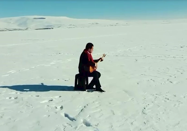 Ardahan Belediye Başkanlığı görevini yürüten Türk halk müziği sanatçısı Faruk Demir, "Mehmet Emmi" adlı şarkısına buzla kaplı Çıldır Gölü üzerinde klip çekti.